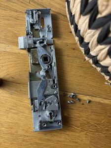 On another job, we attended a residential property where the front door was stuck in the locked position. We promptly actioned the problem. We carefully removed the parts and determined that the ERA vectis centre case on the multipoint locking unit had failed, causing the mechanical failure. We fixed and cleaned the mechanism and reinstalled it, ensuring that the multipoint locking unit is working smoothly.